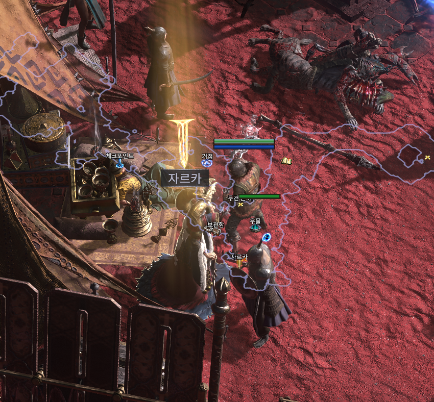 보스를 잡으셨으면, 체크포인트를 누르시든 포탈을 깔아주시든 마을로 돌아가줍니다. 포탈 깔면 맵의 시작 부분으로 가지니까 그냥 포탈 타세요.
