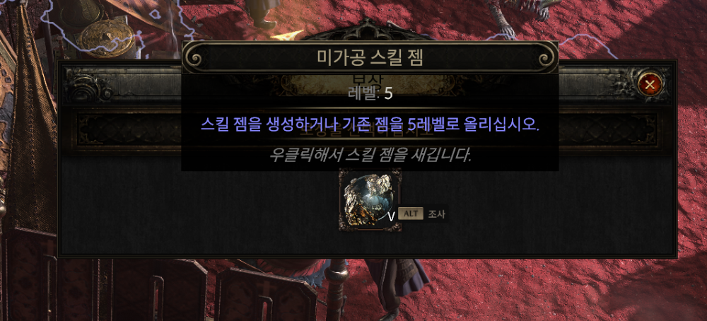 퀘스트 보상은 '미가공 스킬 젬 5레벨'을 주네요.