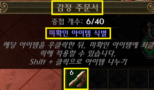 그런 미확인 템들은 감정 주문서를 이용해 열어야 합니다.