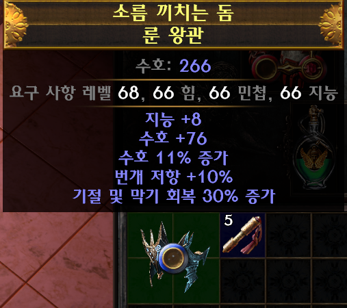 보시면 룬 왕관 아이템이 옵션 없이 미확인 이라고 되어있습니다.